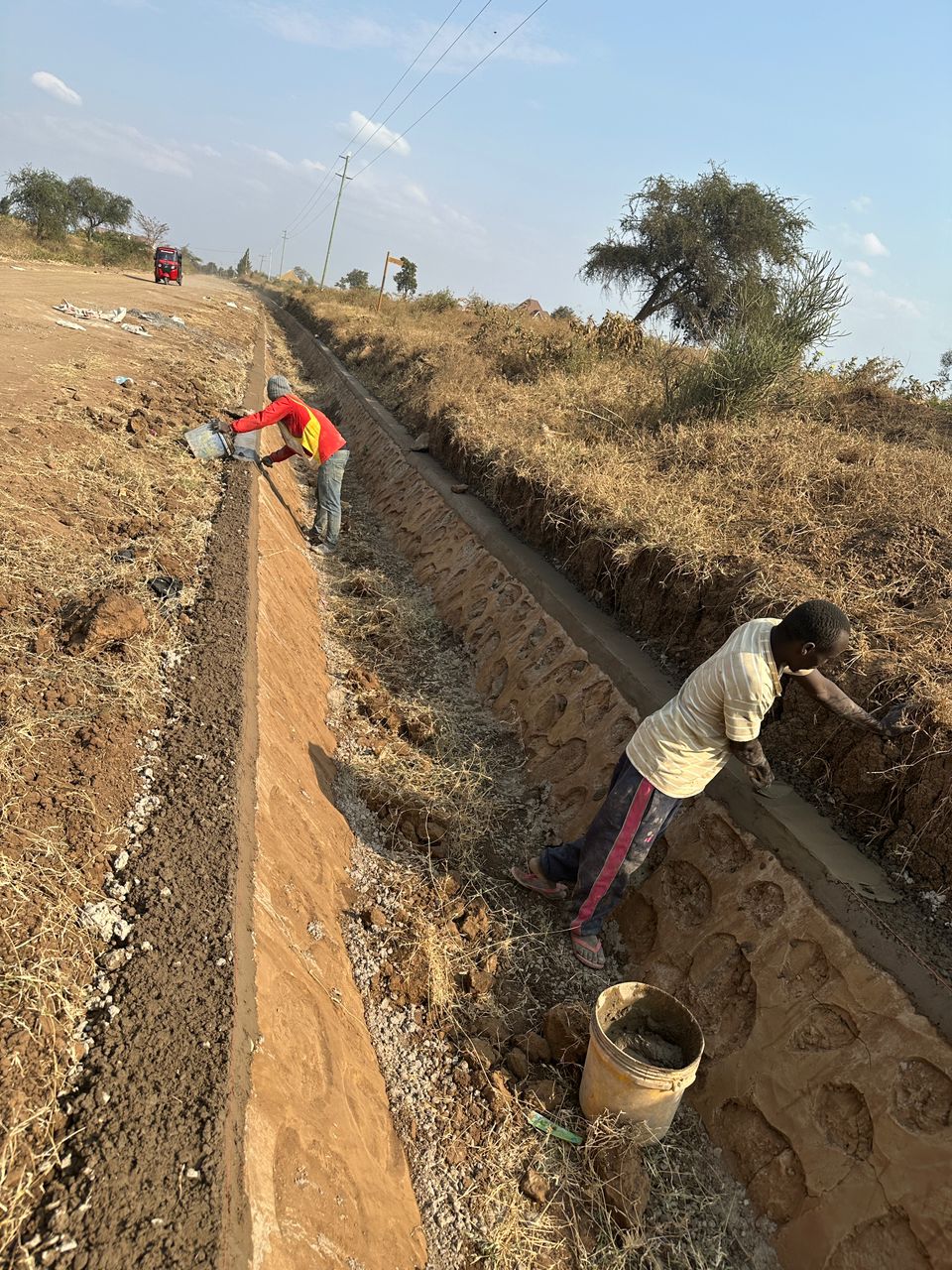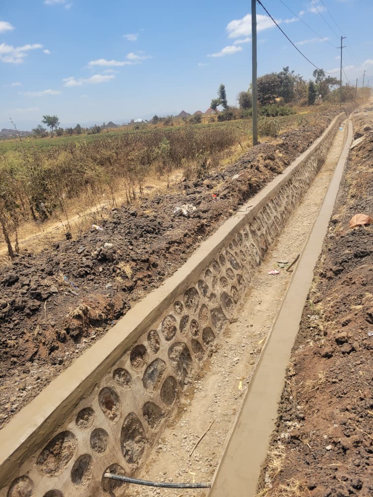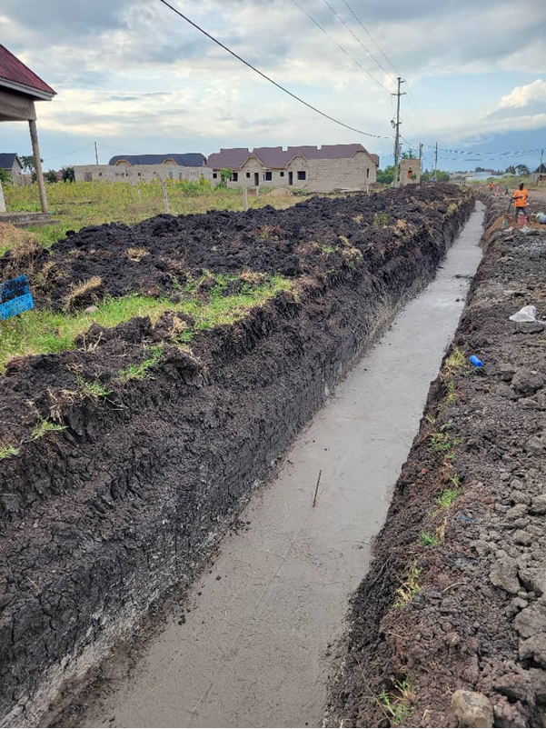 This project targeted the critical SOKOINE – MURIET -MEIDIMU drainage, Open drainage construction involves the creation of surface-level water channels designed to collect and direct stormwater or wastewater away from roads, buildings, or other infrastructures to prevent flooding and erosion. The project is executed by following procedures: excavating a trench, followed by preparing the base with a concrete layer, installing rebar, and casting the concrete. Key steps include grading the base for slope, installing formwork, casting the walls and base, and completing the structure, often with a pre-cast slab on top. Proper slope and maintenance are crucial for the system to function correctly and avoid blockages. Importance of Open drains are crucial for effective surface water management, improving road lifespan, preventing waterlogging, and promoting environmental hygiene